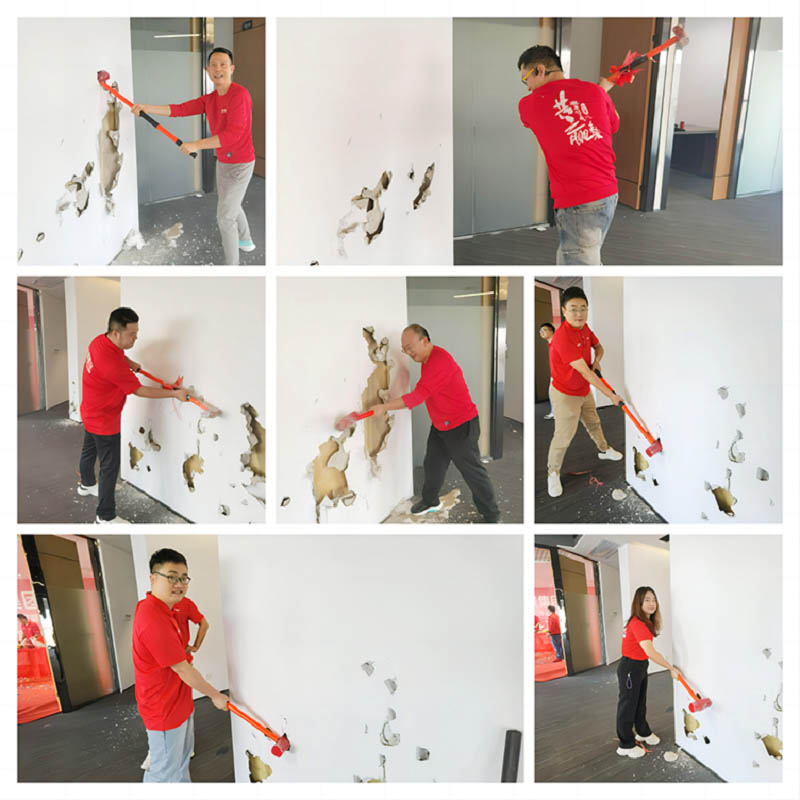 紅桌、紅錘、紅毯,色澤鮮亮紅潤的乳豬,紅紅火火!一錘開工大吉,二錘財(cái)源廣進(jìn),三錘萬事如意!伴隨著禮花的綻放,合景人手握禮錘,一同為新辦公區(qū)裝修開工儀式揭開序幕。在熱烈的掌聲中,大家共同慶祝辦公樓裝修工程的正式啟動(dòng)!
