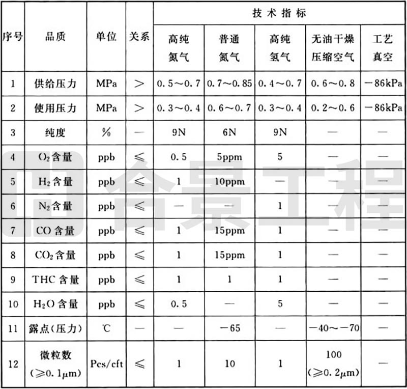 B.0.1 發(fā)光二極管生產(chǎn)工藝動力品質(氣體)要求可按表B.0.1執(zhí)行。