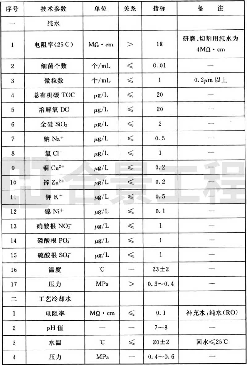 B.0.2 發(fā)光二極管生產(chǎn)工藝動力品質(水)要求可按表B.0.2執(zhí)行。