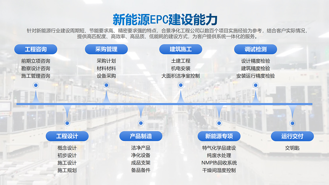 合景智慧建設(shè)深耕工程建設(shè)領(lǐng)域二十余年,是國內(nèi)高科技工業(yè)建筑領(lǐng)域EPC服務(wù)佼佼者,尤其是新能源電池、OLED、半導(dǎo)體、光學(xué)鏡片、芯片、食品及原料加工、一二類醫(yī)療器械領(lǐng)域廠房建設(shè)的業(yè)績突出。公司始終堅持智慧智能總包建設(shè)和“與顧客共同創(chuàng)造價值”的經(jīng)營理念,在項目初期、施工、服務(wù)等方面依據(jù)合景智慧建設(shè)技術(shù)團技術(shù)建議,提高建造效率,減少建廠能耗等成本,實現(xiàn)業(yè)主效益最大化。